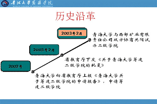 2003年2月,省教育厅下发《关于青海大学筹建二级学院的批复》,根据文件有关规定,2003年2月青海大学与西部矿业有限责任公司双方协商共同试办二级学院,并签订了合作协议书。